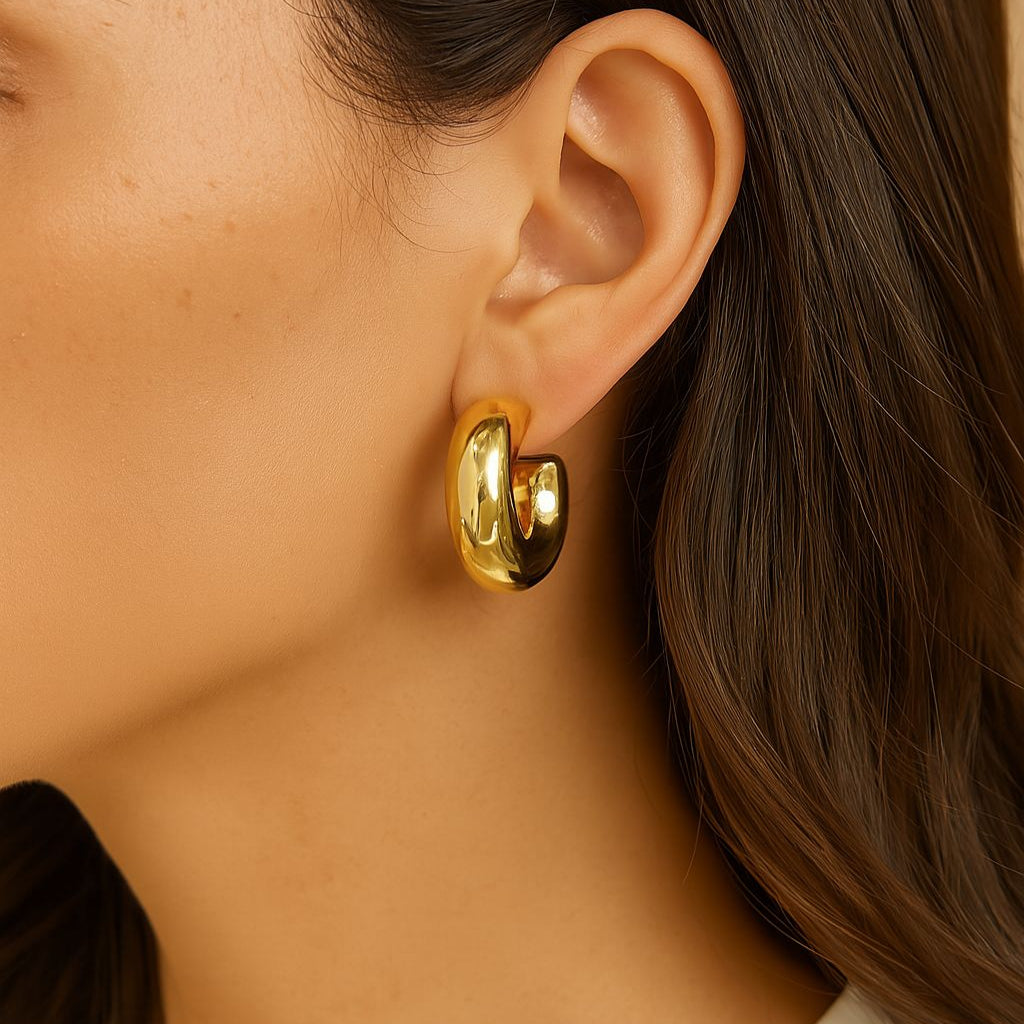 Nuestros aretes chunky dorados son ese statement que eleva cualquier look, desde un outfit casual hasta uno de noche.