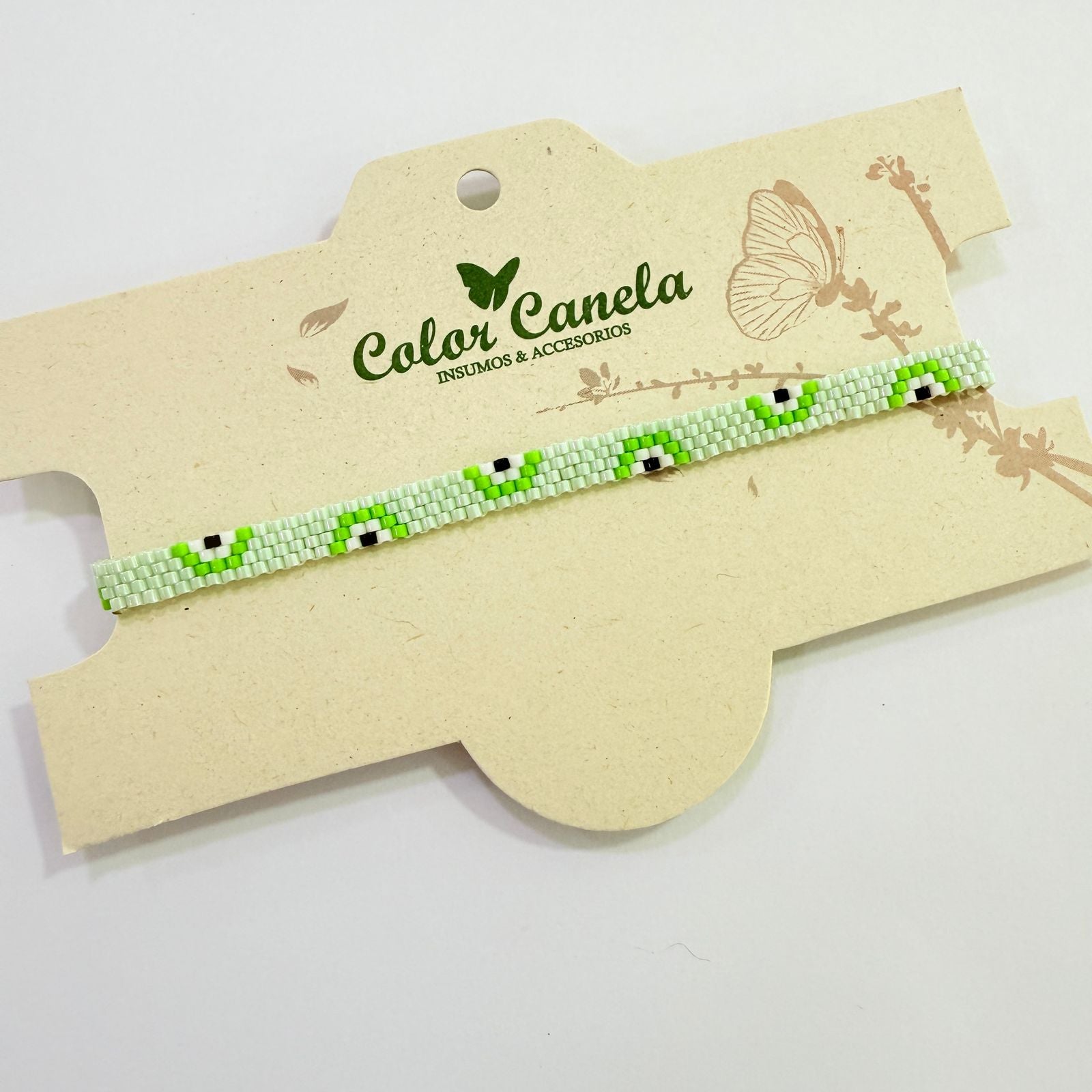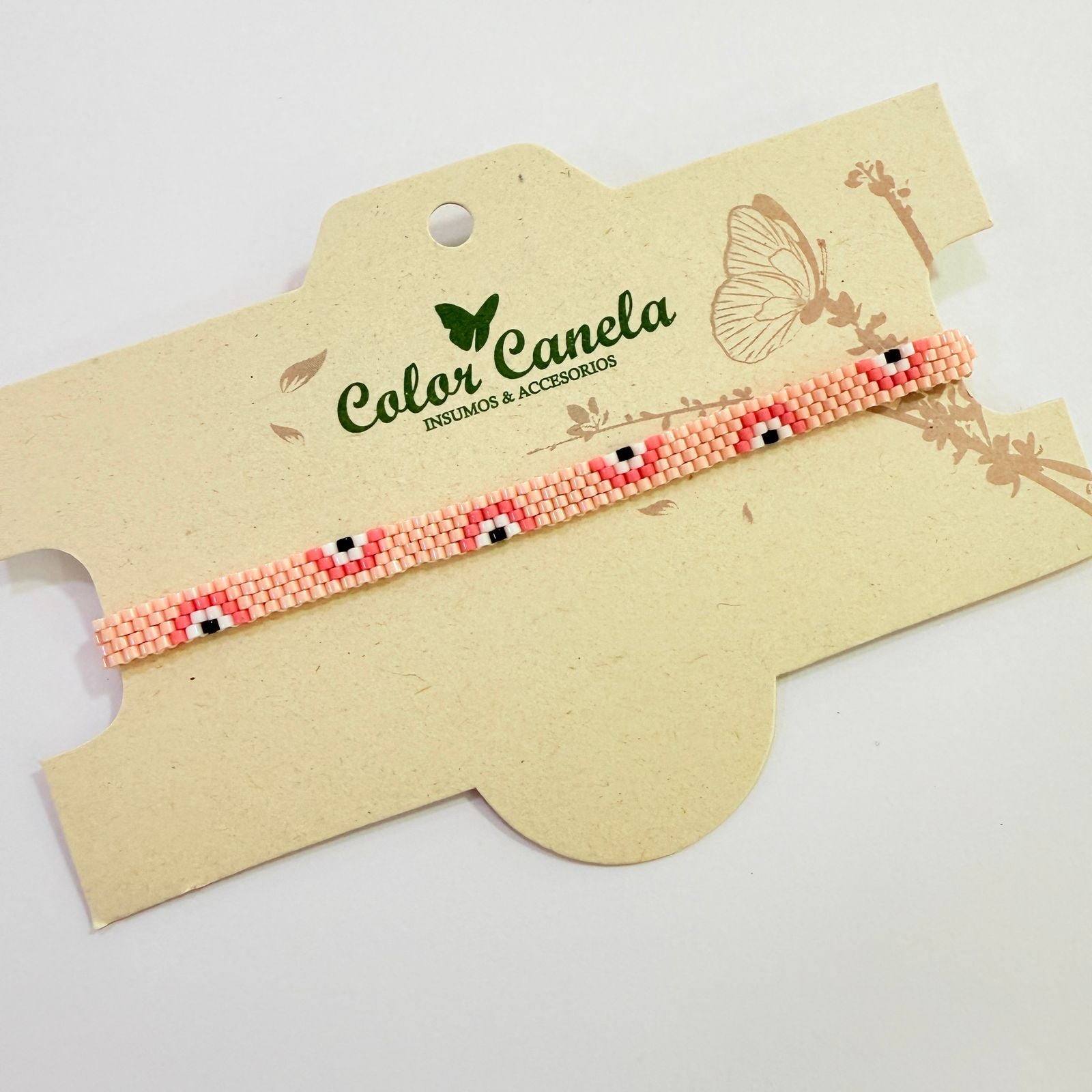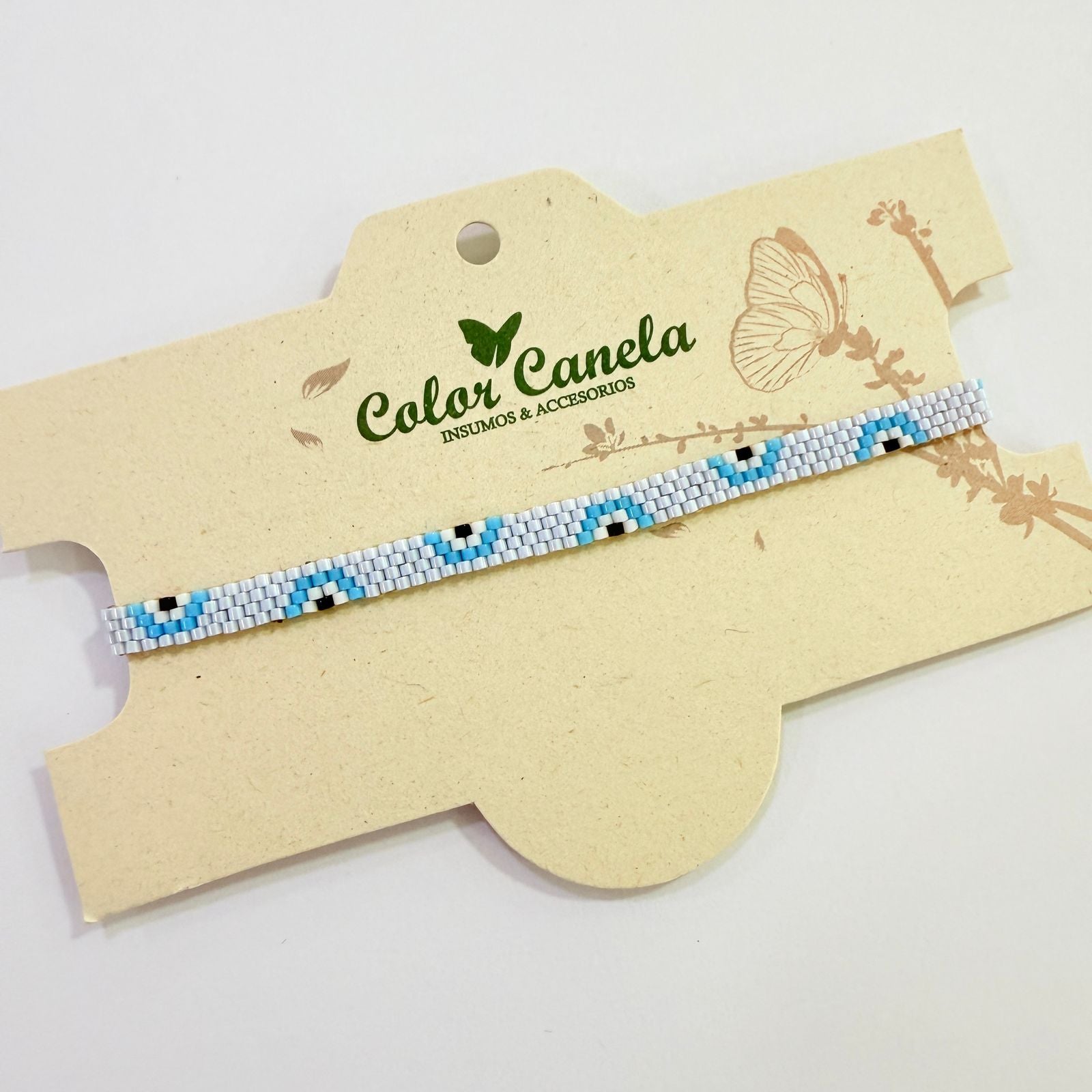 Esta pulserita de tonos pastel es como un suspiro de color en tu muñeca. Está tejida a mano con cuentas Delica 11/0 originales de Miyuki y lleva pequeños ojitos que no solo le dan un toque único, sino que también simbolizan protección y buena energía. El cierre ajustable en hilo coreano hace que sea cómoda y fácil de llevar todos los días. Perfecta para regalar buena vibra o consentirte con un detalle lleno de ternura
