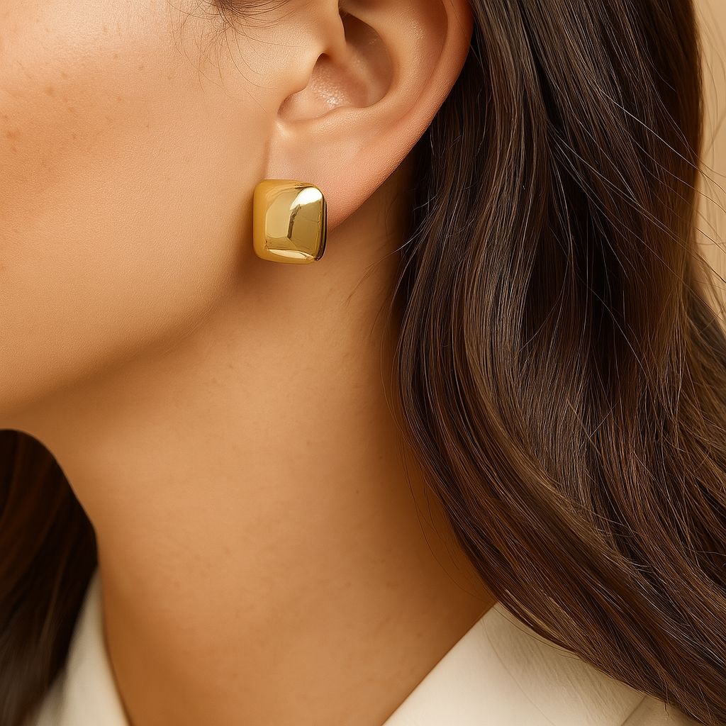 Domo es un arete tipo botón con forma cuadrada suavizada y acabado espejo, ideal para quienes buscan piezas minimalistas con presencia. Su silueta atrevida es perfecta para realzar cualquier look con solo un toque.